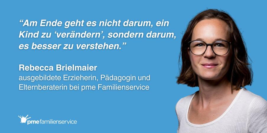 "Am Ende geht es nicht darum, ein Kind zu „verändern“, sondern darum, es besser zu verstehen." Rebecca Brielmaier, ausgebildete Erzieherin, Pädagogin und Elternberaterin