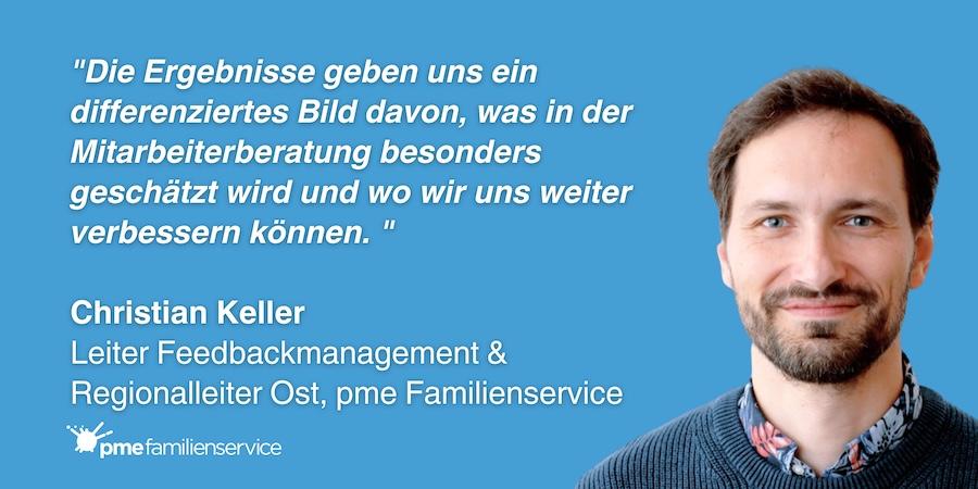 Der NPS von +82.5 unterstreicht die hervorragende Arbeit, die unsere Fachberatenden und Coaches leisten, und das Vertrauen, das uns unsere Kund:innen entgegenbringen.”, so Christian Keller, Leiter für das Feedbackmanagement und Regionalleiter Ost beim pme Familienservice.