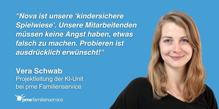 "Wir sehen es als unsere Verpflichtung als Arbeitgeber, die Chance zur Weiterbildung im Bereich KI zu geben. Deshalb haben wir uns bewusst dafür entschieden, unsere KI-Plattform Nova für jeden im Unternehmen zugänglich zu machen." – Michael Kühnen, Leiter IT bei pme Familienservice